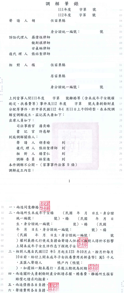 案例十一、離婚等(含未成年子女親權酌定、扶養費等)及夫妻剩餘財產分配等事件