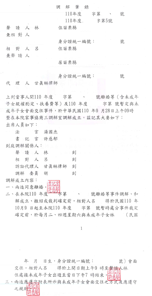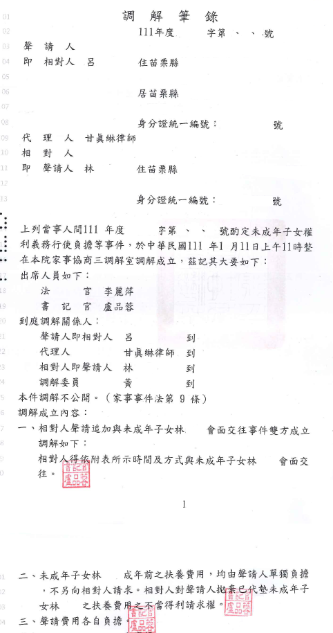 本件當事人主張對造婚後有經常賭博的惡習,且未支付家裡開銷等費用,在當事人為維持家計外出工作時又懷疑當事人外遇,進而公開散布污辱當事人的言論致當事人精神極大的痛苦等情事,委請本事務所提告離婚、子女監護權及扶養費,經法院調解成立。