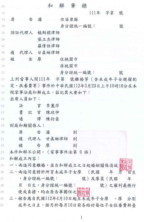 案例二十一、離婚等(含未成年子女親權酌定、扶養費等)事件
