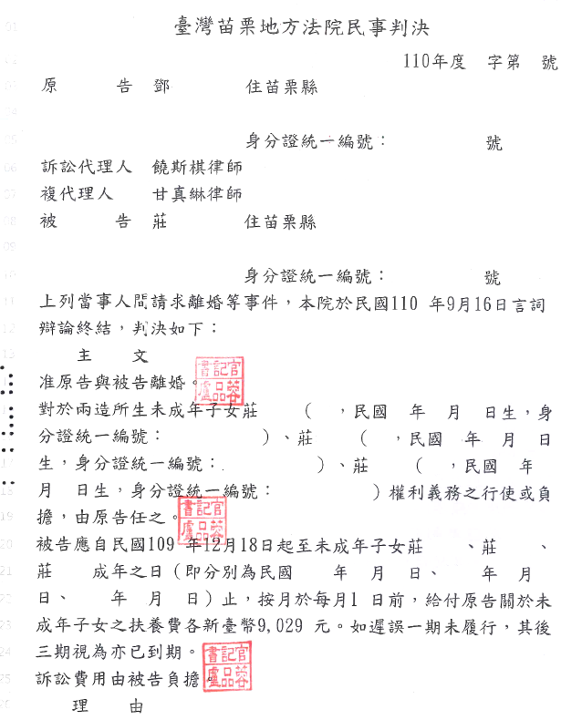 案例二十八、離婚等(含未成年子女親權酌定、扶養費等)等事件