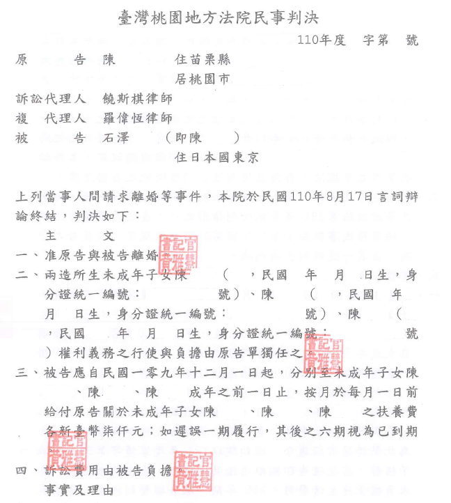 案例二十九、離婚等(含未成年子女親權酌定、扶養費等)等事件
