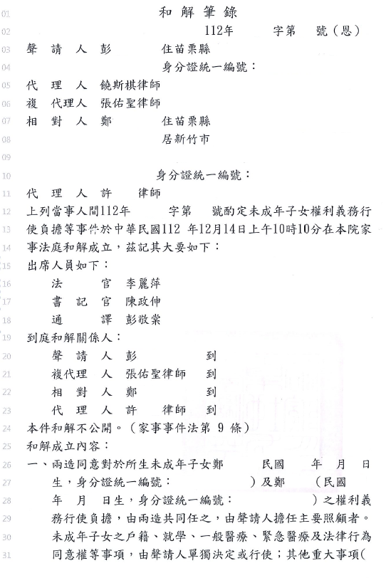 本件當事人主張與對造婚後因經濟、未成年子女教養問題爭執不斷,未成年子女教養之責任全由當事人一肩扛起,對造長期對當事人及子女言語辱罵、精神暴力等情,委請本事務所提告離婚、子女監護權及扶養費,經法院調解離婚成立。
