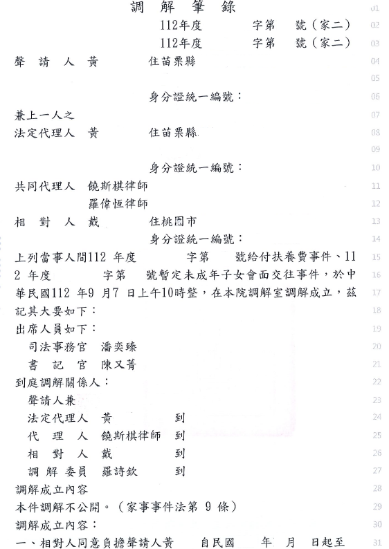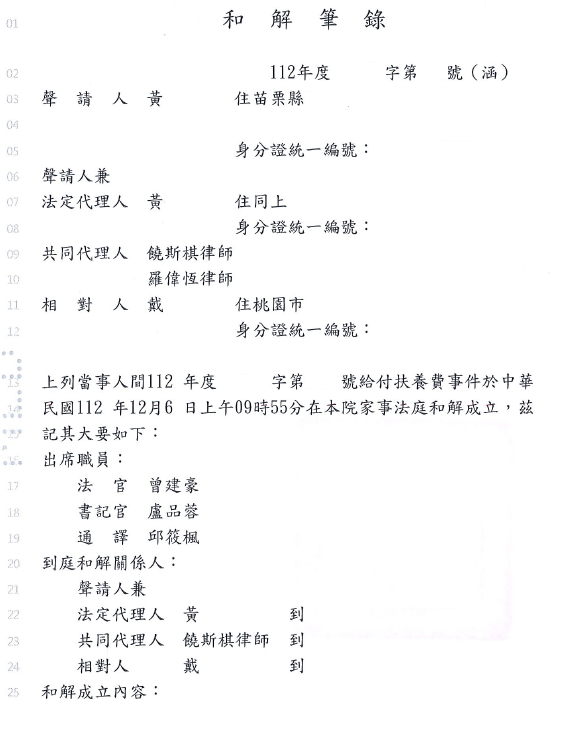 本件當事人主張對造離婚後未履行負擔未成年子女扶養、生活費用之義務,委請本事務所提告給付扶養費,經法院和解成立。